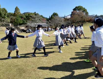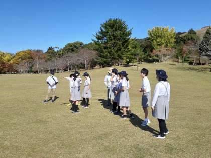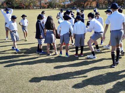 お弁当のあとは、広大な芝生広場で遊びます。はないちもんめをしたり鬼ごっこをしたり、それぞれ思い思いに楽しみました。