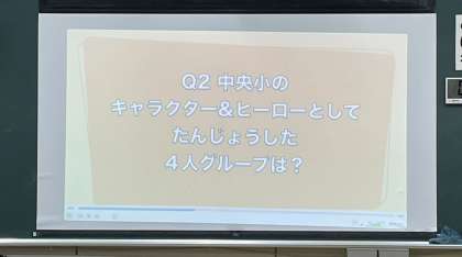 中央小学校のこれまでの歩みなどをクイズ形式で振り返り「わたしたちの学校、中央小学校」がもっともっと大好きになるひと時となりました。
