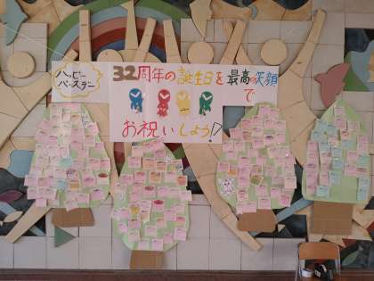 じゃんけんに勝つと、32周年記念キャラクター「32(サニー)」のカードをもらうことができます。