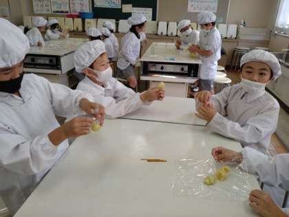 湯がきたてのサツマイモからはいい匂いが…。