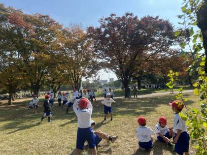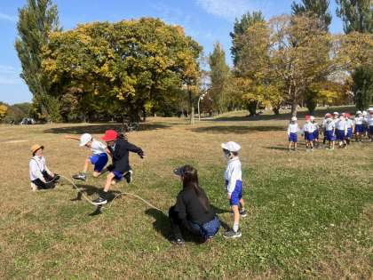 長縄遊びやだるまさんが転んだで遊ぶクラスや、鬼ごっこを楽しむクラスなど、クラスの友だちとのひとときも楽しみました。