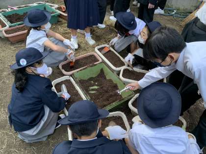 6年生が上町中学校に部活動体験に行ってきました。全部で10の部活動に分かれて、実際におこなわれている活動を体験します。写真は、園芸部、サッカー部、バドミントン部の様子です。