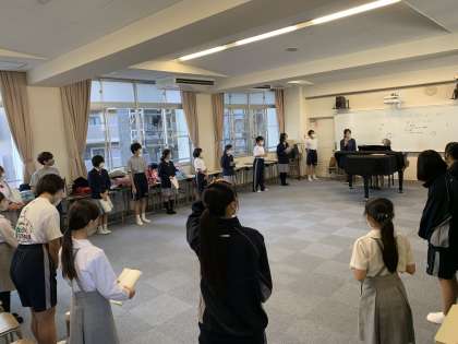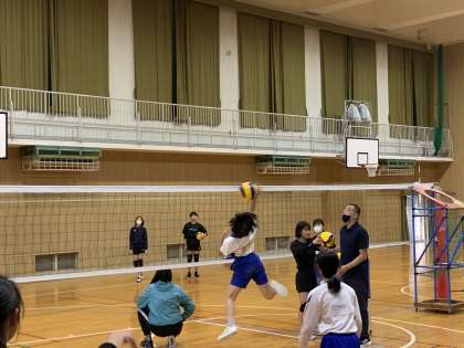 続いて、バレーボール部、野球部、合唱部の様子です。先輩の生徒たちがやさしくサポートしてくれています。
