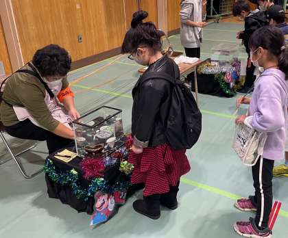 そして、同じく体育館の「コインおとし」です。うまく真っ直ぐに落とさないと、上下左右に振られてしまいます。とても難しいです...。