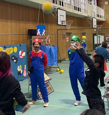また、体育館の入り口あたりやピロティの中でも、マリオとルイージを発見しました!