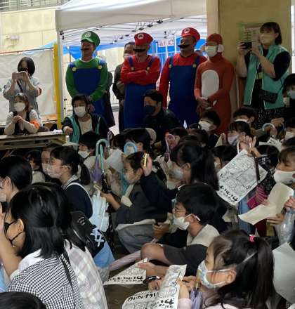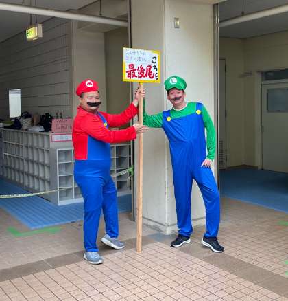 さすが「マリオ ゲームランド」らしく、マリオとルイージがシュートをする子どもたちを見守っています。