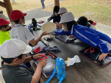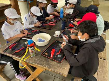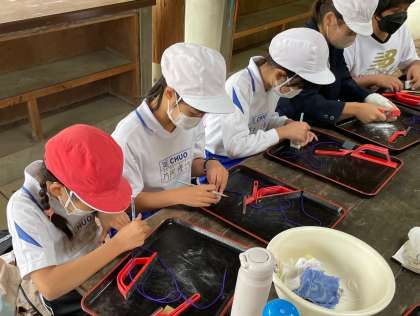 もとになる石に鉛筆で型をとったあと、2種類の器具を使って削っていきます。