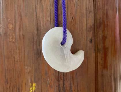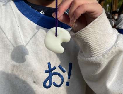 とてもきれいな形の勾玉ができあがりました。紙やすりを使っての仕上げも施されています。