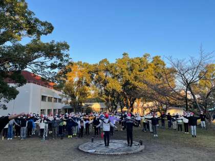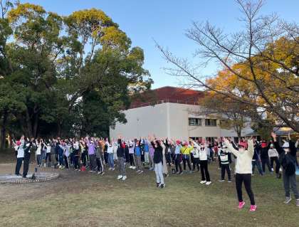おはようございます。2日目の朝が明けました。とてもいいお天気です。全員で体操をして身体を目覚めさせます。今日もみんなで協力して、楽しく過ごせるようがんばりましょう。