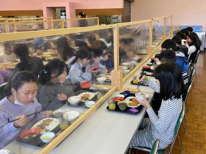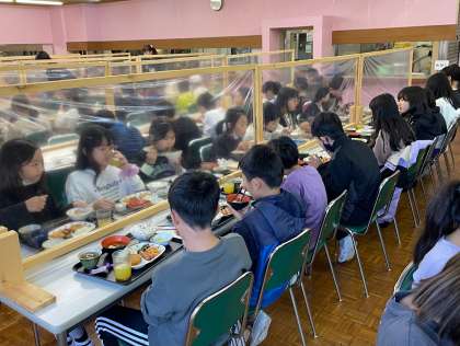 今日一日のエネルギーを蓄えるために、みんなしっかりと食べています。