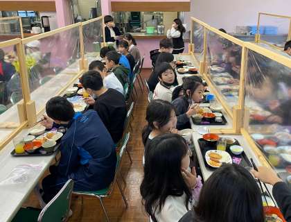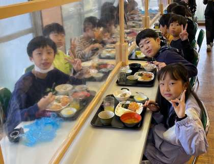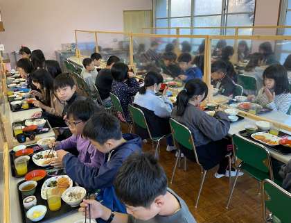 黙食ですが、おいしい顔でみんな元気な様子をあらわしています。