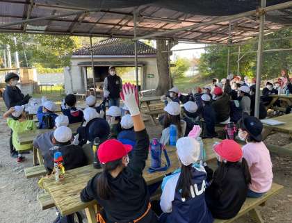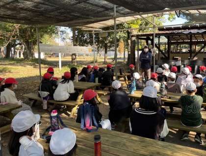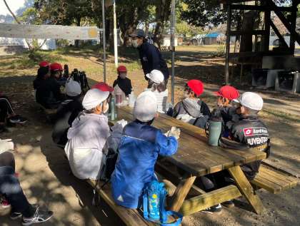 朝食のあとは、薪割り体験です。まず、センターの方から活動全体の説明を受けます。