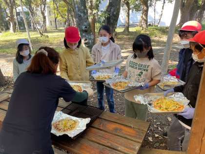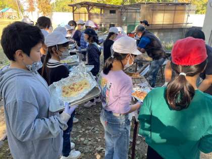 準備のできたグループから、スタッフさんの待つかまどへ持っていきます。