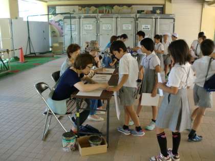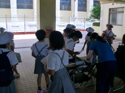 2日ぶりのプールということもあり、朝からたくさんの子どもたちが夏休みのプールに参加しいています。またPTAさんも受付としてお手伝いしていただいています。