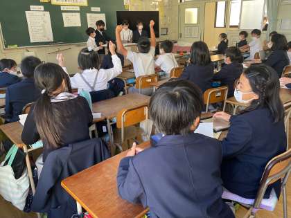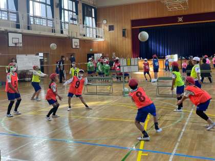 また、総合的な学習の時間「夢の自動車コンテスト」で、グループごとに考えた夢の自動車について発表し、質疑応答しあう学習をしたり、体育「ソフトバレーボール」で、みんなで力を合わせてゲームを楽しむ学習をしたりしました。