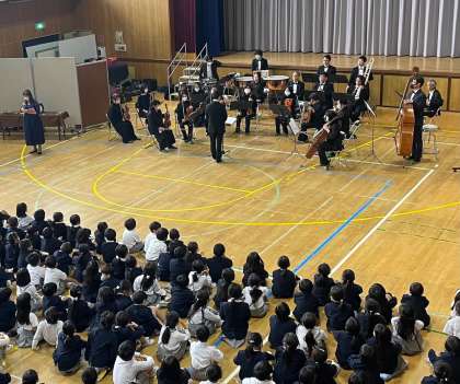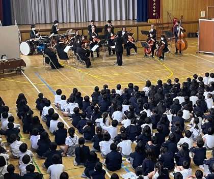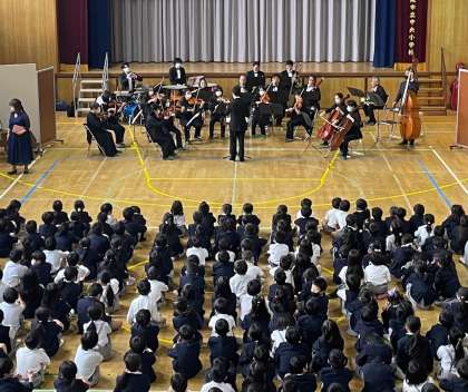 それはなぜかというと、本校の1〜3年生対象に「ムジカフィルハーモニー管弦楽団」の演奏会が開かれたからです。