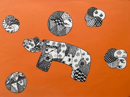 あえて彩色はせずに、モノクロームで奥の深い和文化の世界を表しています。