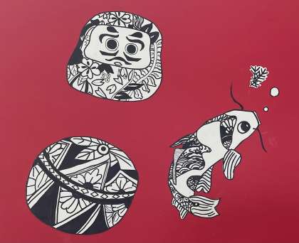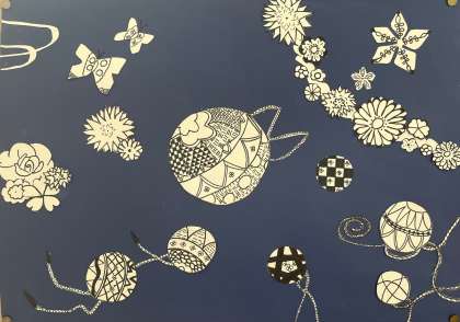 彩色の代わりに付けた模様は、古くより織物や陶磁器、室内装飾等で使用される伝統文様です。