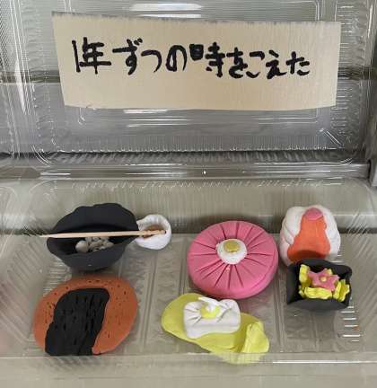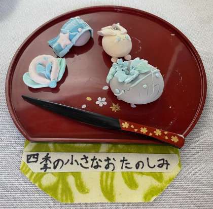 紙粘土に水彩絵の具を練り込んで色をつけたあと、和菓子の形に整えます。絶妙な色加減がいいですね。