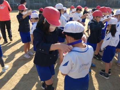 もう終わりかな…と思ったら、なんと4年生から2年生に「がんばったねメダル」の贈呈がありました。
