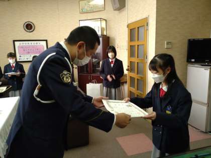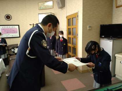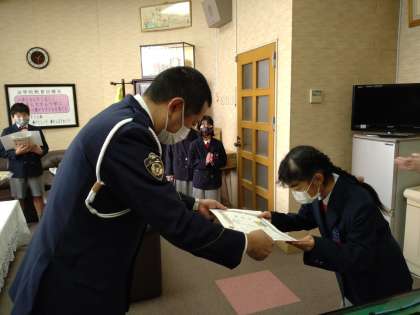 警察の方から一人一人に表彰状が渡される際には、みんなとても緊張している様子でしたが、それぞれとても立派な態度で受け取っていました。