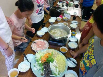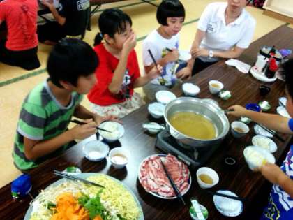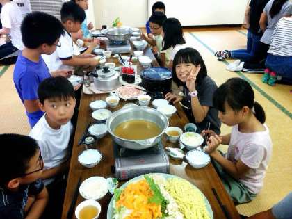 お鍋と子どもたちの熱気でムンムンです。