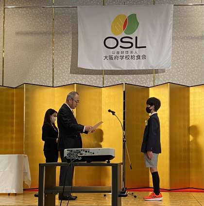 大阪府学校給食会主催の「おおさか学校給食献立コンテスト」において、本校の6年生児童が最優秀賞を受賞し、冬休み中に授賞式がおこなわれました。大阪府内全小学校から応募総数約2000作品の中での最優秀という素晴らしい賞です。本当におめでとうございます!