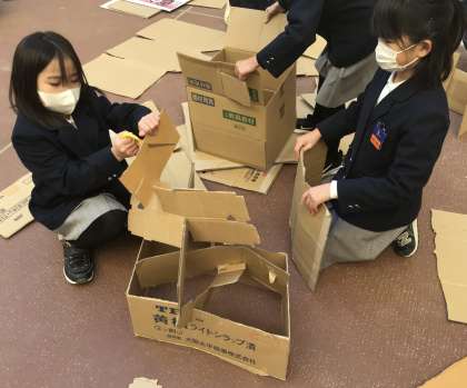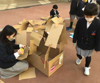 つくっているうちに、思いもよらない形になっていくこともあります。子どもたちは想像を大きくふくらませながら、どんどんつくり変え、つくり続けていました。
