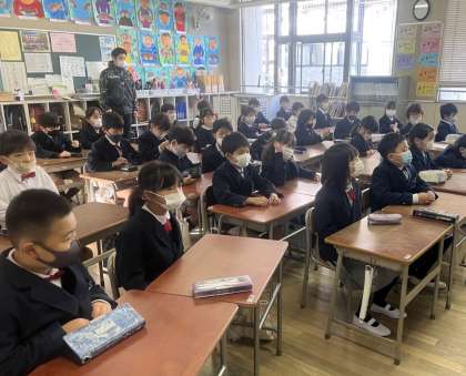 校長先生や生活指導担当の先生からのお話を集中して聞いています。3学期の目標や計画をしっかりと立てて、安全に楽しく過ごしてほしいと思います。