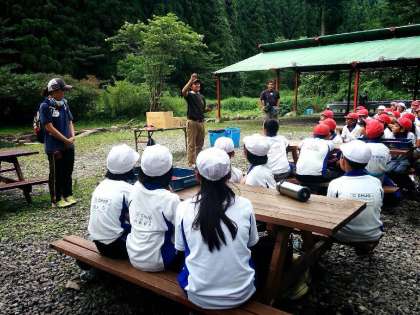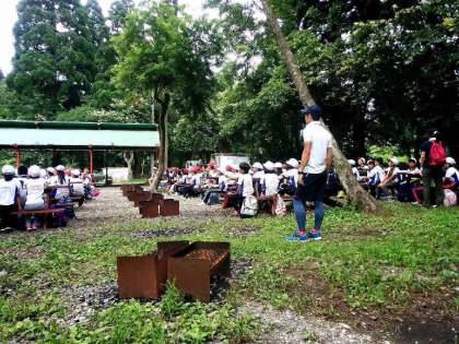 いまから焼き板磨きです。説明をサンダイフクのご主人から受けています。