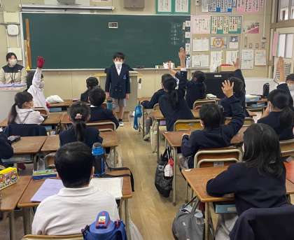 こちらは、2年生の教室です。このクラスの朝の会の中には、星占いのコーナーがあります。「今日のよい運勢の第1位は...○○座です!」という発表にみんなドキドキしていました。