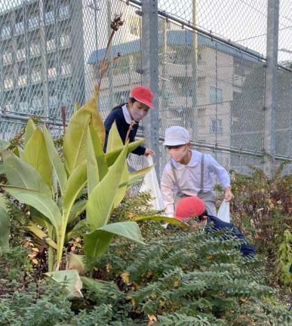 体育の授業や遊びなどで毎日使わせてもらっている瓦屋町グラウンドで、美化委員会の子どもたちが定期的に清掃活動をおこなっています。