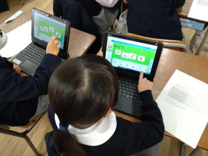そのあと、タブレットを使って、「にんじん」や「牛肉」がどのグループに入るか分けてみました。