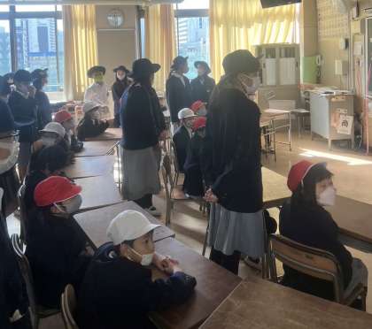 教室に入ってふりかえりをおこないます。津波到来の可能性が低い中央区に住む子どもたちですが、地震はいつどこで起こるかわかりません。海の近くに出かけている時に遭遇することもあります。地震の後に津波が来るかも知れないということをしっかりととらえておかなければなりません。1.17という日を心に留めて、これからも防災学習を大切にしていきます。