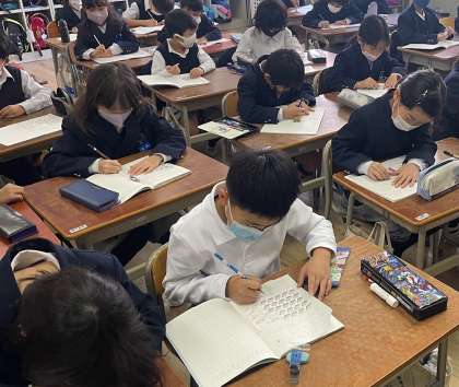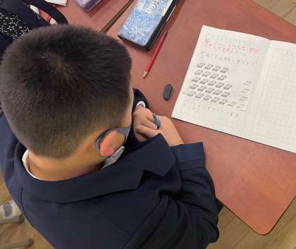 2年生の算数の時間です。1000より大きい数について、位ごとのまとまりに気をつけながら数を表す学習をしています。