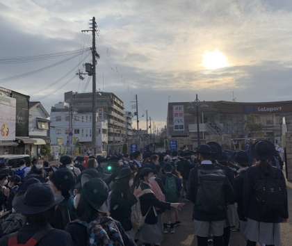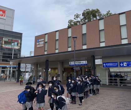 今日は、6年生が楽しみにしていた卒業遠足です。子どもたちは、予定通り甲子園駅に着きました。