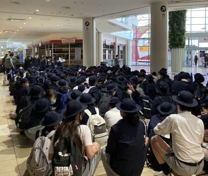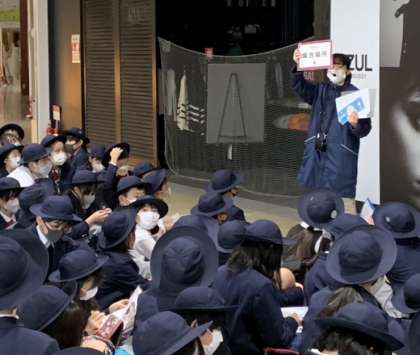 開館までしばらく待機します。その間に、スタッフの方から説明を受けます。