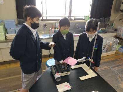 金属をじーっと見つめて「お、変わってきた!」「よし、予想通り!」と班のメンバーと盛りあがっていました。
