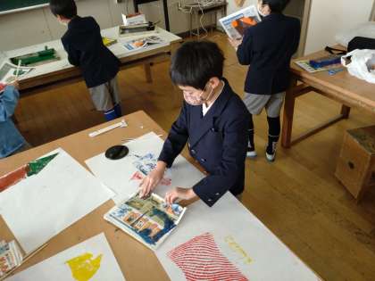 いろいろな素材を使った、カラー紙版画に取り組んでいます。