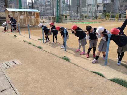 鉄棒に耳をあてて、ズラッと並んでいる様子はスーパーで売っているパックのシシャモのようでしたが、一番端でも「5回!」ときちんと伝わったことを確認していました。
