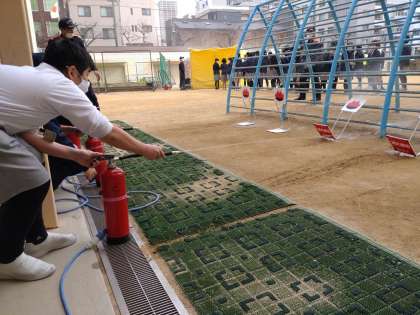 消火器はいざ使ってみると、狙い通りに放つのが難しいです。