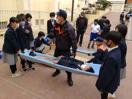 ひとりの人を運ぶにも、何人かで協力しないと難しいです。特に、けがをしている人は優しく運ばなければならないので、上げ下ろしには慎重さが必要です。