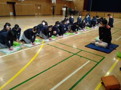 心臓マッサージは、正しい姿勢、位置、力加減、リズム感が大切で、今回使った用具は、正しくおこなうと音が鳴るものでした。うまく鳴らすコツをつかむのが難しかったようです。