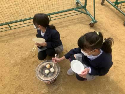 子どもたちは「まだかな?まだかな?」と何度も裏返し、置き場所を変えながらおもちを焼いていました。