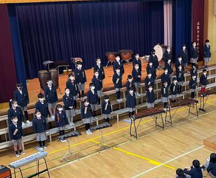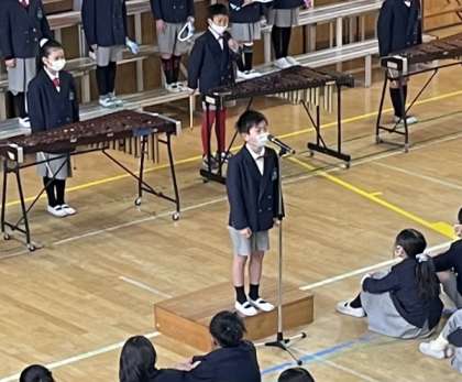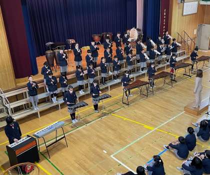 次は、クラスごとの歌唱と器楽奏です。トップバッターの3組が、「ぼくらの秘密基地」と「風になりたい」を披露しました。