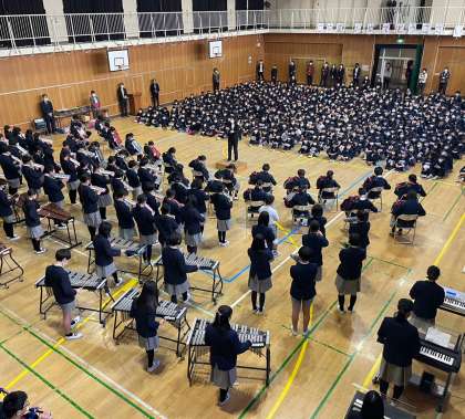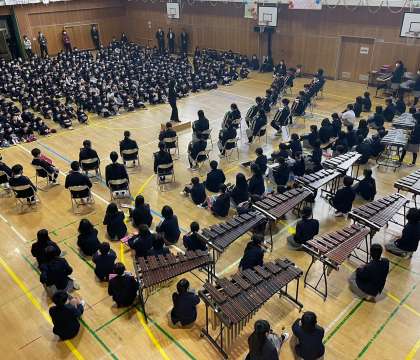 美しいハーモニーの合唱と圧倒的な迫力の器楽奏に、1年生から5年生の子どもたちは、驚きと憧れのまなざしを向けていました。