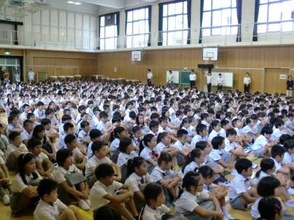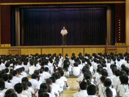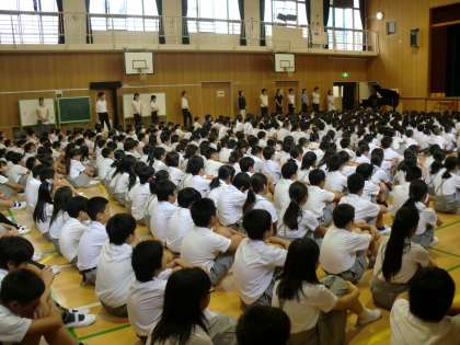夏休み中に大きな事故やけがの報告もなく、こんがり日焼けした子どもたちが元気に校歌を歌い、2学期の良いスタートとなりました。
