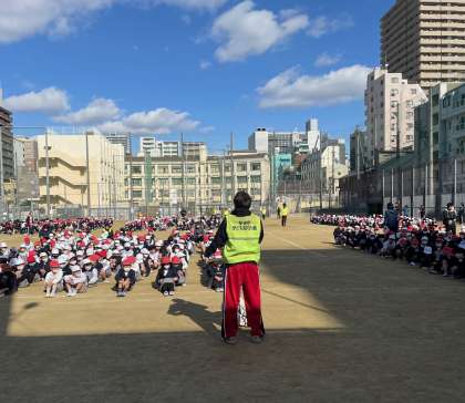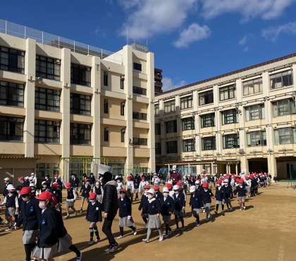 このことを心に留めて、中央小学校では、これからも防災学習を大切にしていきます。写真は、1月17日の地震・津波に対する避難訓練の時の様子です。