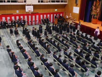 卒業生が入場し、会場は大きな拍手に包まれました。そして、開式の辞が告げられ、第32回卒業証書授与式が始まりました。
