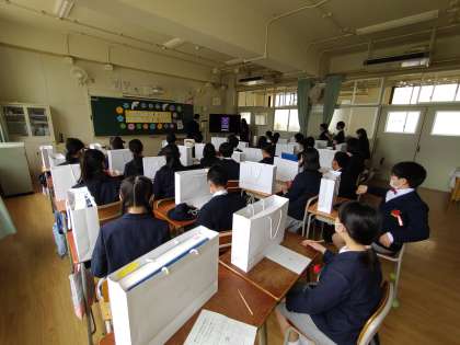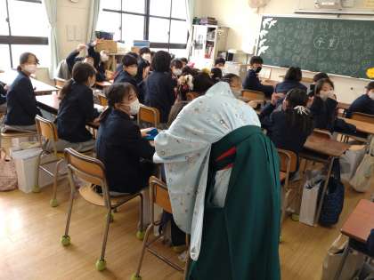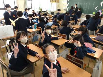 式場を出たあと、もう一度思い出の詰まった教室に入りました。担任の先生と過ごす最後の時間です。